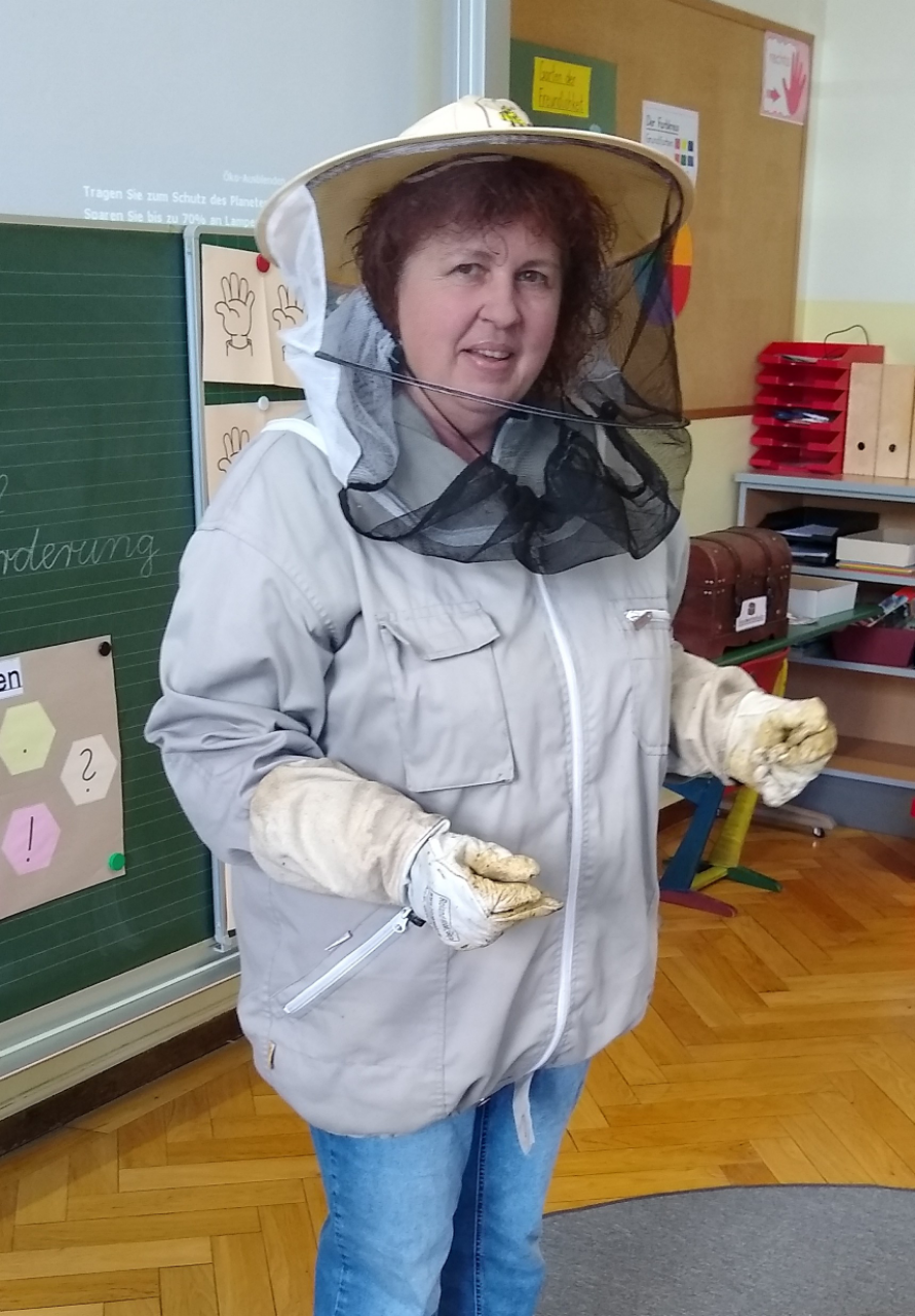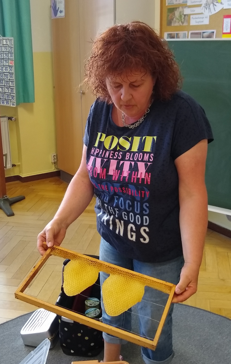 Besuch der Imkerin Elfriede Hausmann in der 2. Klasse