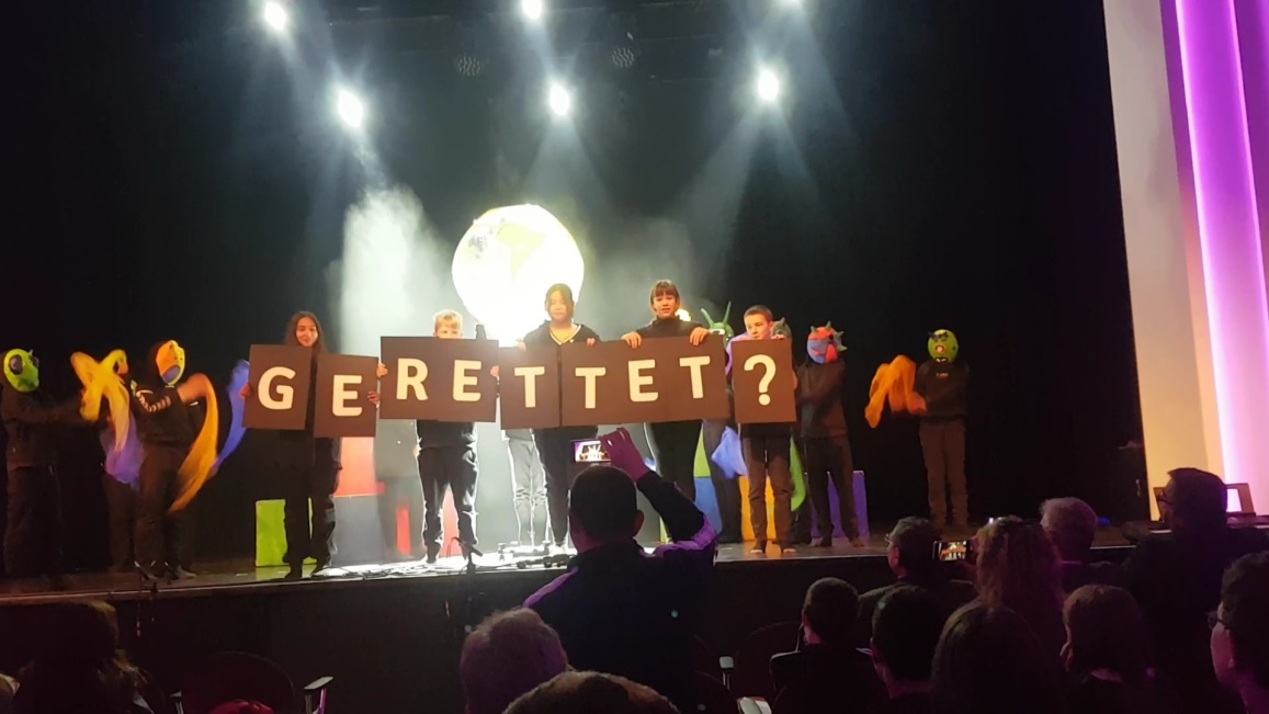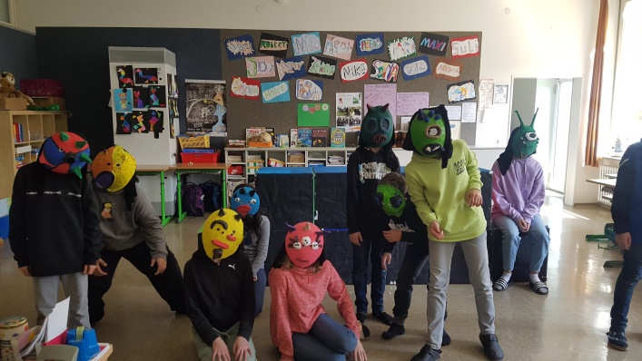In der Woche vom 15. bis 19. Mai fand im gesamten Landkreis die Musische Woche statt. Dabei traten viele Schüler aus vielen Grund- und Mittelschulen als Schauspieler, Musiker und Tänzer auf. Auch wir nahmen mit unserem Maskentheater „Rettung vom anderen Stern?“ teil und durften auf der großen Bühne im Burghauser Stadtsaal spielen. Schon Wochen vorher probten wir mit Frau Heindlmaier und Frau Reitberger die einzelnen Szenen. Besonders schwierig war die Szene mit den Alienmasken. Am Vormittag des 19. Mai war es dann soweit und wir waren wahnsinnig aufgeregt. Vor vielen Eltern, Schülern und Ehrengästen gaben wir unser Bestes und bekamen großen Applaus. Vielleicht dürfen wir bald wieder auf die Bühne…