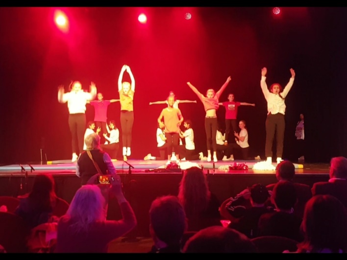 Auch wir, die Mädchen der Cheerleader-AG, waren bei der Musischen Woche dabei und haben gmeinsam mit Frau Lutz ein sportliches Programm mit Hebefiguren einstudiert. Es war gar nicht so einfach, da unsere Probezeit sehr kurz war. Dennoch hatten wir großen Spaß. Das Publikum klatschte begeistert mit und schenkte uns danach einen Riesenapplaus.